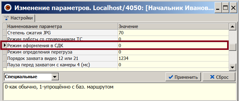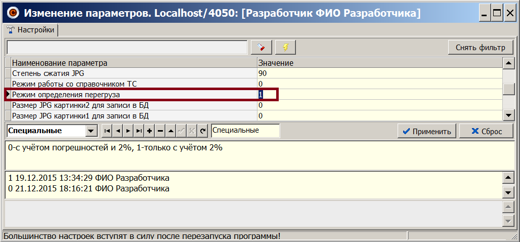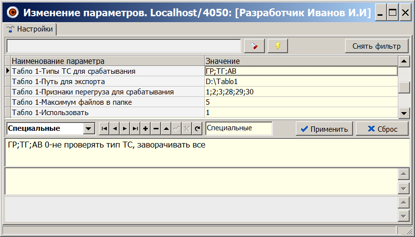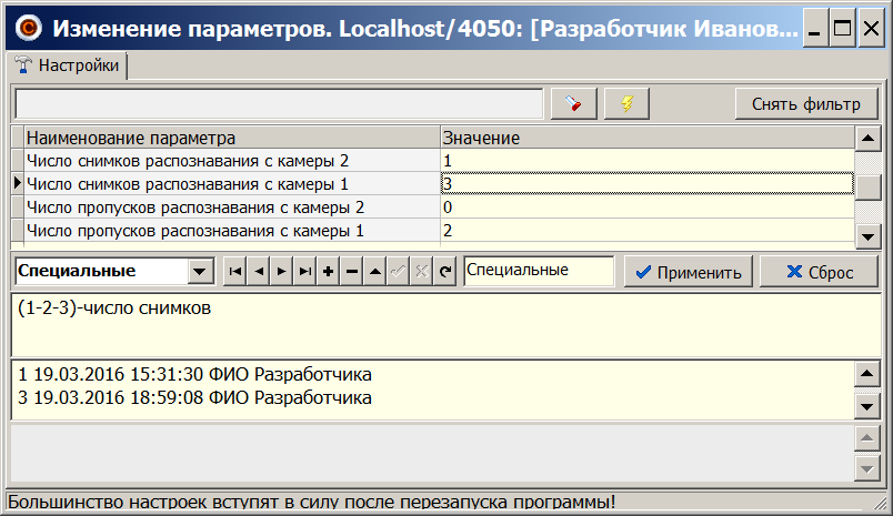 Внимание! Эта опция работает только если в программу был осуществлён вход с правами настройщика!