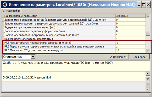 указанное значение, естественно что при этом "PRZ Час автоматич перезагрузки сервера от 0 до 23" должен быть больше -1.