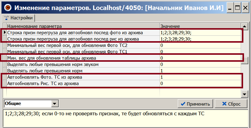 Раньше в критериях был только минимальный вес ТС для автообновления таблицы архива.