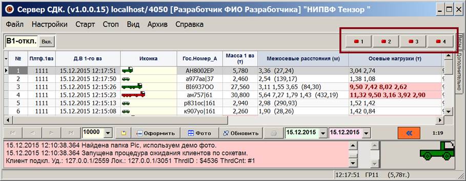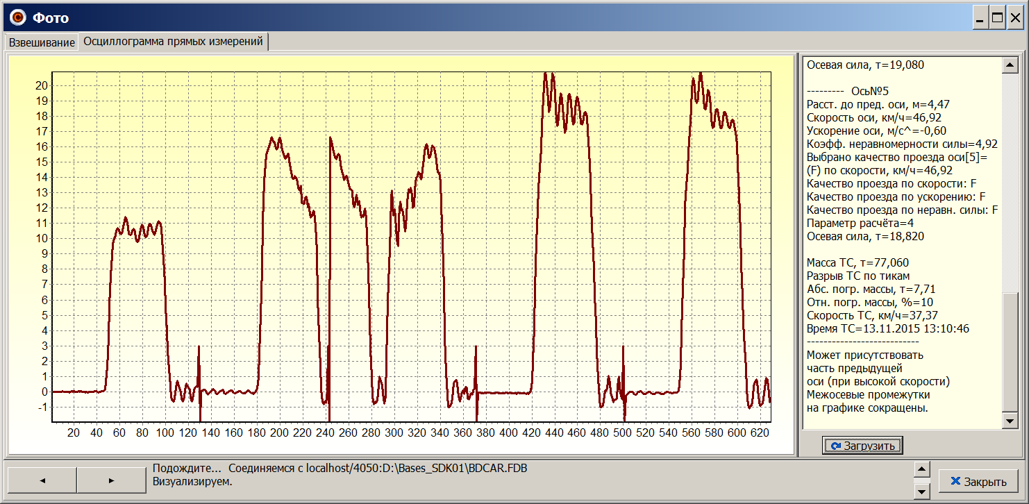 В режиме измерения (взвешивания) с остановкой каждой оси ТС на ГПУ программой Klient_car реализуются следующие функции: