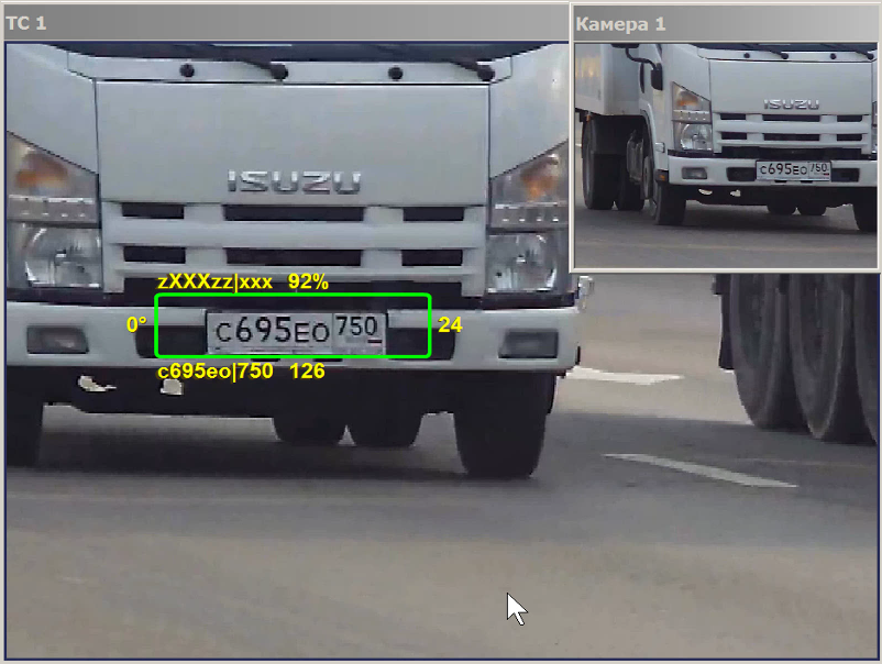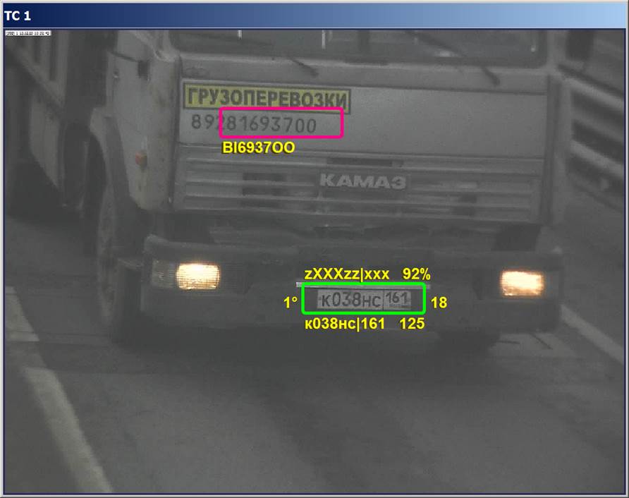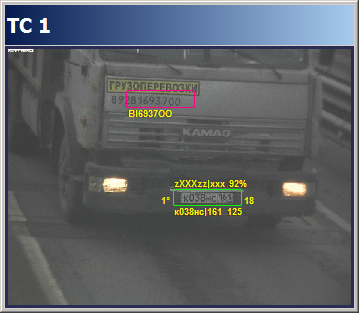 Распознавание номеров ТС работает как на прямом направлении, так и на обратном.