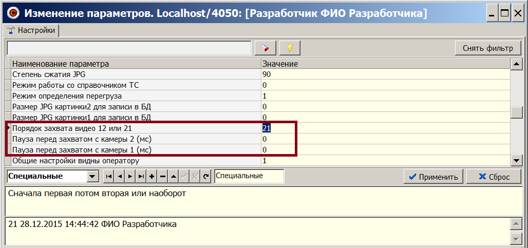 Программа автомтически определяет направление движения по весам и производит захват то с камер 1-2, то с камер 3-4. В (Опти->Специальные) появились следующие настройки: