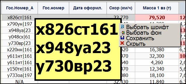 В рабочем режиме все результаты измерений отображаются в таблице пополняемых записей «текущего архива». Кроме результатов измерений в данной таблице отображаются дополнительные сведения, полученные в результате идентификации ТС, если имеются соответствующие средства и в базе данных (БД) есть сведения связанные с идентификатором ТС, а также сведения вносимые оператором при регистрации ТС. «Длина» таблицы и состав выводимых колонок (необходимые для отображения характеристики) руководитель отбирает из полного списка. В этой же форме таблицы можно просматривать записи прошлых дней (архив).