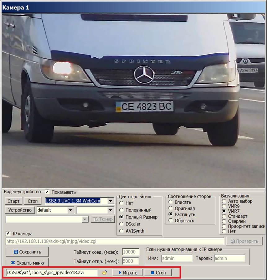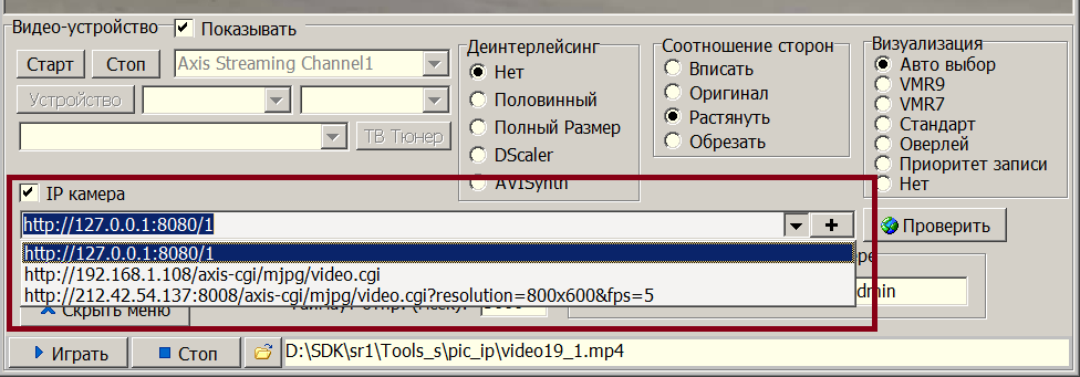 8.6 Появилась возможность использовать в демоверсии вместо реального сигнала с ip-камеры, видео файл, который можно проигрывать по кругу уже не в программе, а с помощью стандартного видеоплейера "VLC media player".