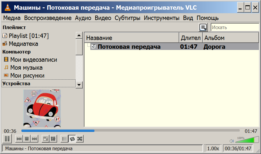VLC media player будет транслировать любой видеофайл в сеть в формате ip-камеры: