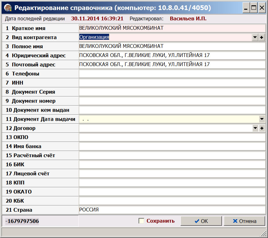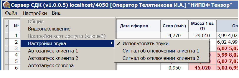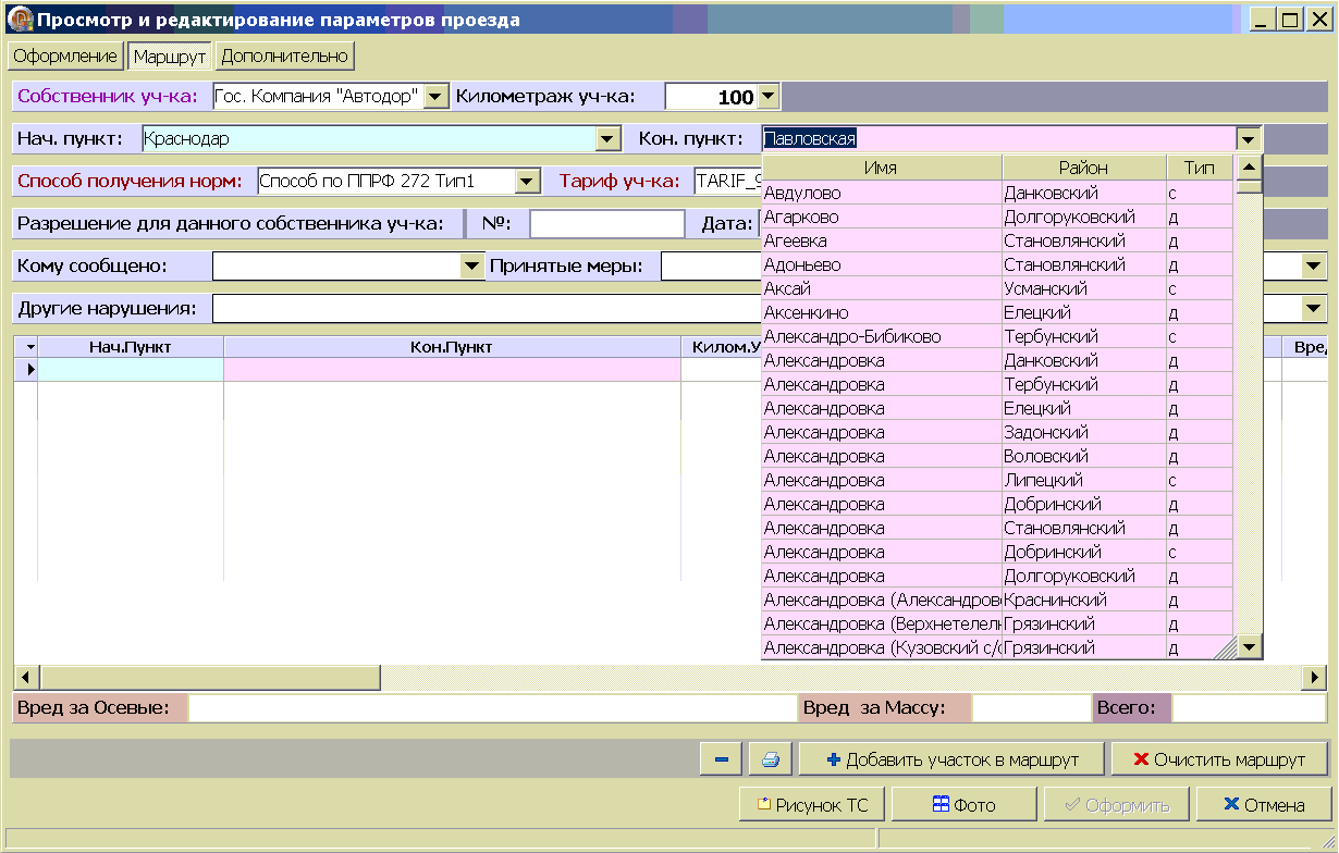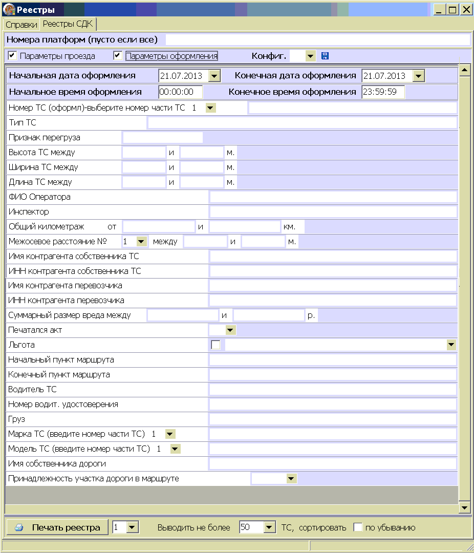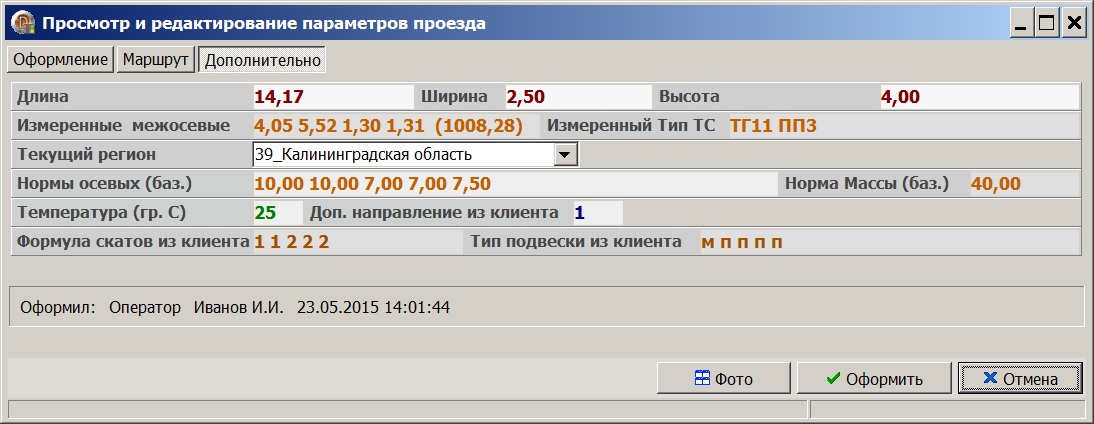 - ввод оператором сопутствующей информации о ТС, отображение на экране ПК сохраненных данных с визуальным отделением данных, полученных из Клиента;