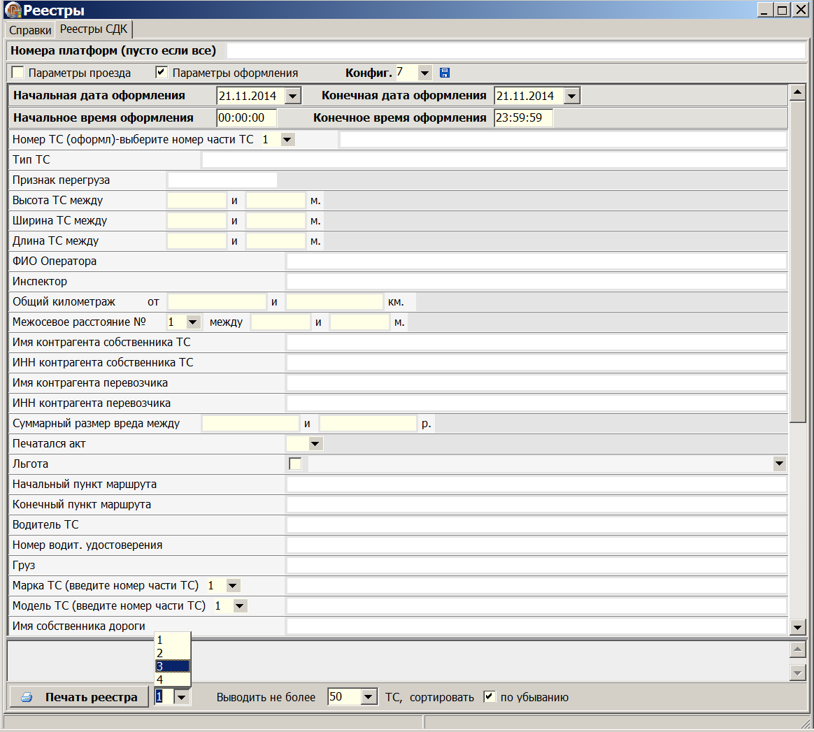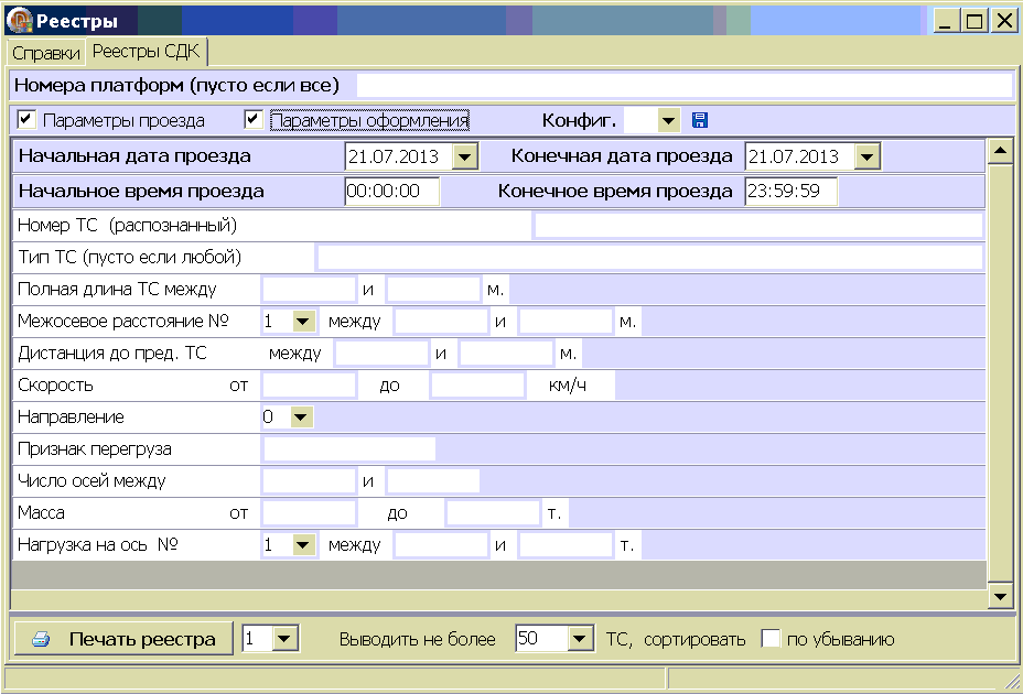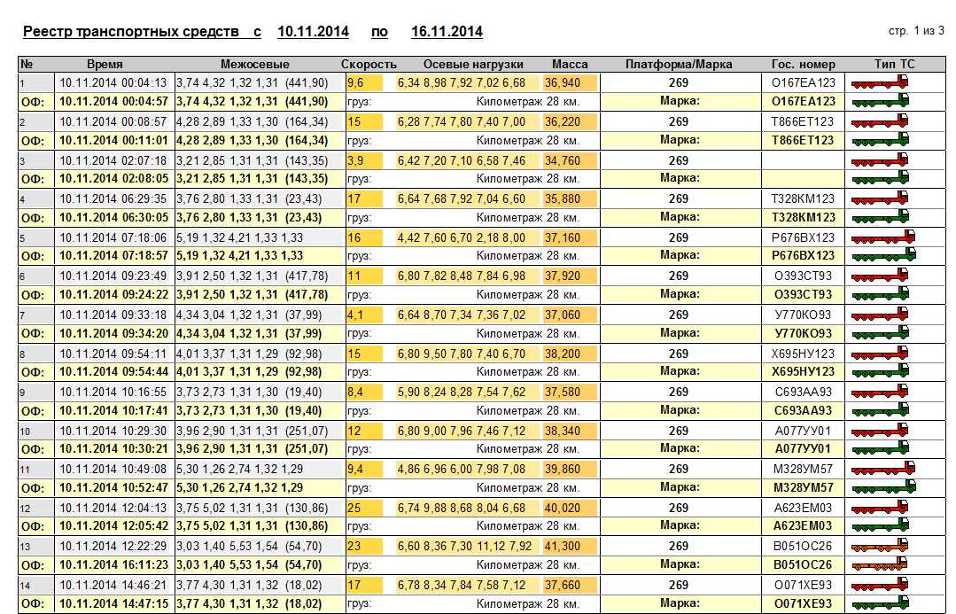 перегруженные ТС, которые будут запрашиваться из архива в соответствии с критериями отбора: